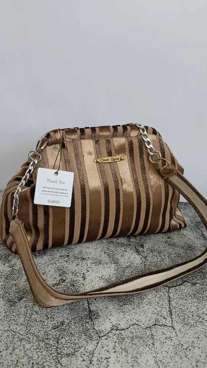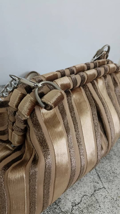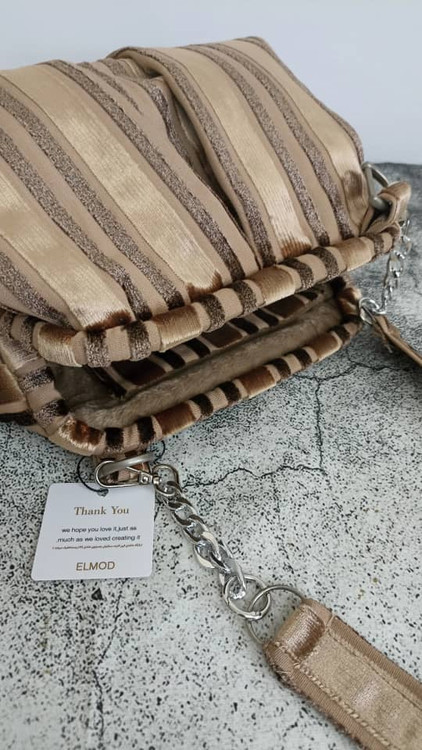 ویژگی ها: رویه مخمل طرح دار ، بند بلند زنجیر و پارچه ، دهانه مخفی