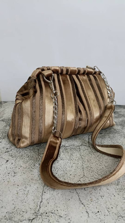 رویه مخمل طرح دار ، بند بلند زنجیر و پارچه ، دهانه مخفی
