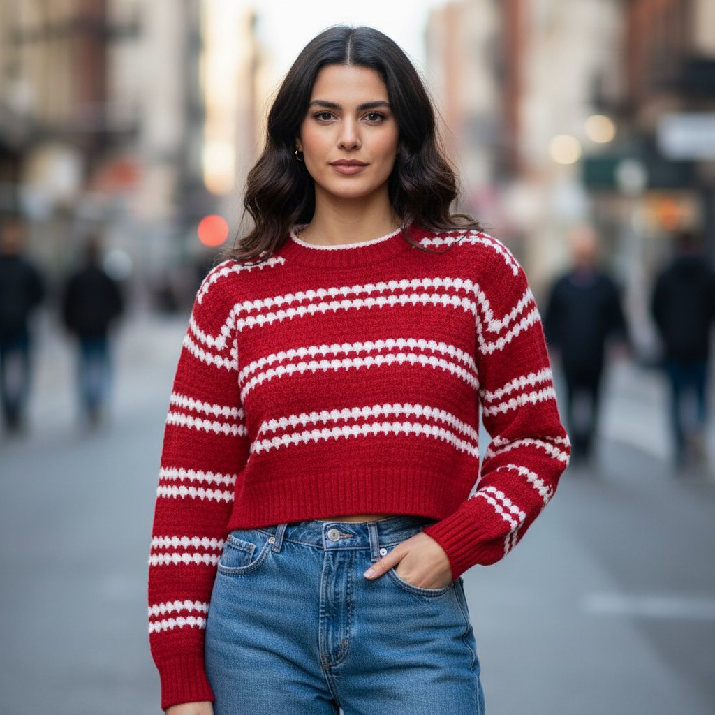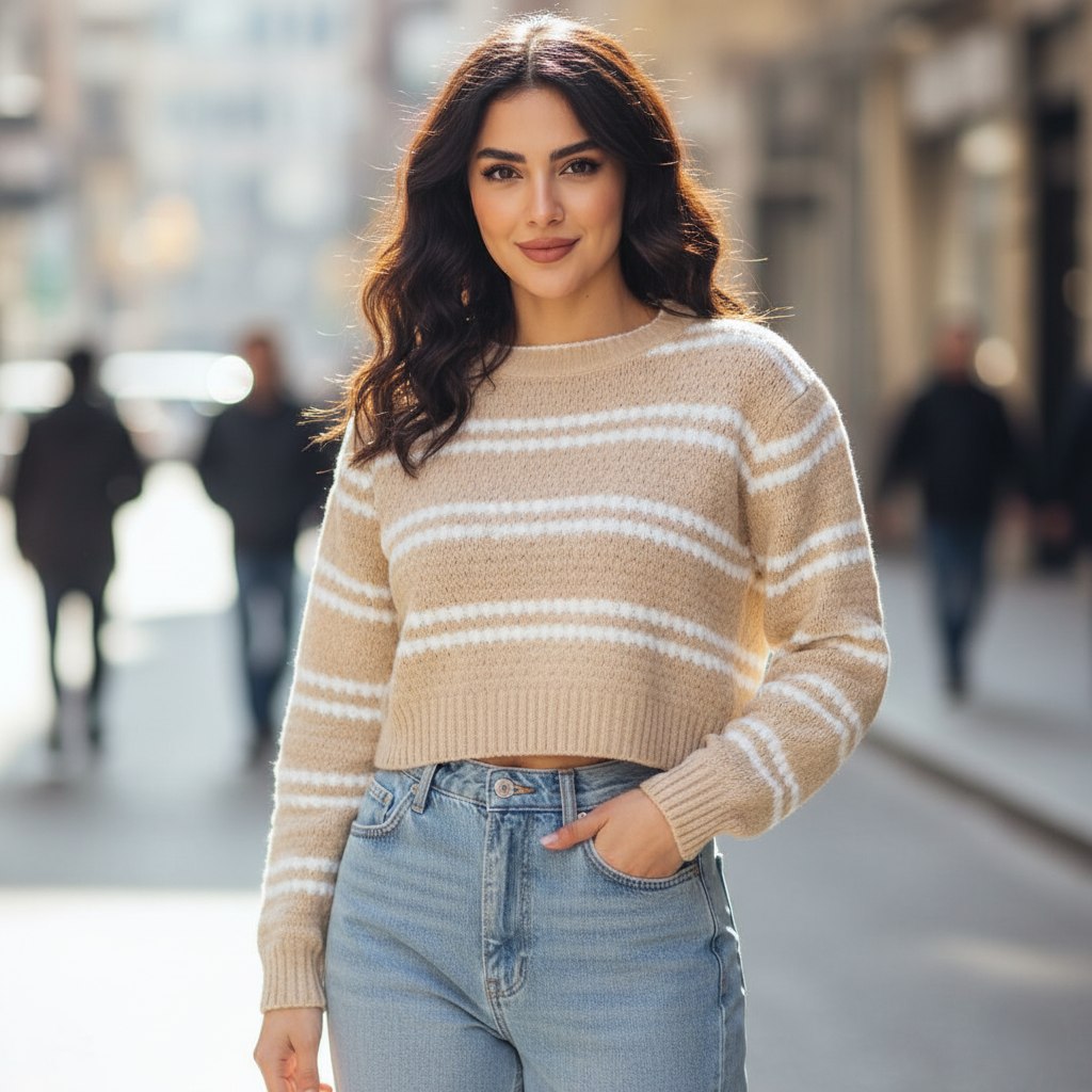 پلیور بافت راه راه درشت بافت