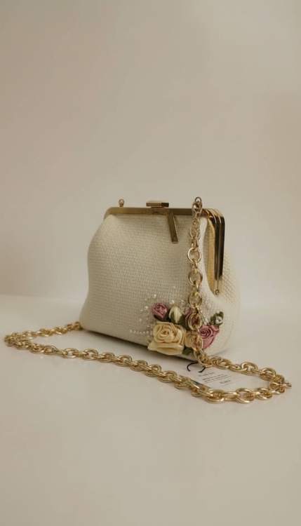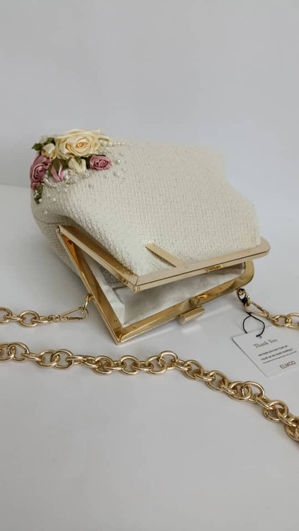 کیف مجلسی دست دوز ؛ رنگ شیری